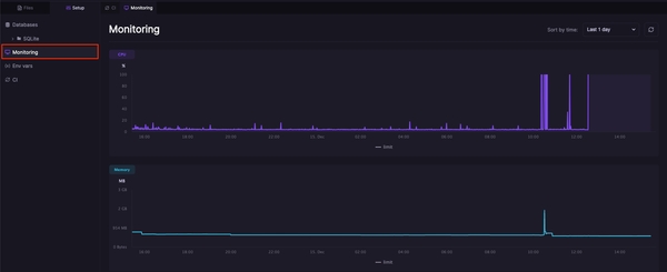 To open the resource monitoring, open any of your workspaces navigate to setup/monitoring and select the timeframe you want to review. Resource consumption data is saved for the last 14 days.