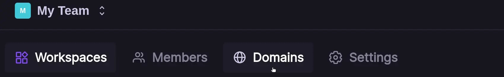 To add your domain, navigate to the Domains tab in the workspace Dashboard.